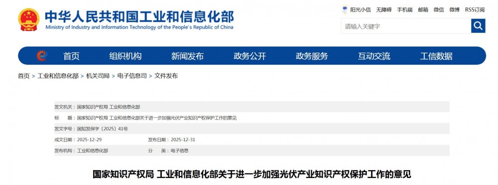 2025年12月31日,国家知识产权局、工业和信息化部发布《关于进一步加强光伏产业知识产权保护工作的意见》